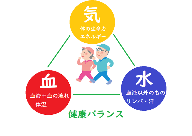 東洋医学では「気・血・水」や経絡の流れを整えることで、身体全体のバランスを調整していきます。